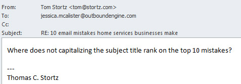 I’ve always treated the subject as a title and thought it should look like this “10 Email Mistakes Home Services Businesses Make”. For a company that specialized in e-mails, this struck me as odd.