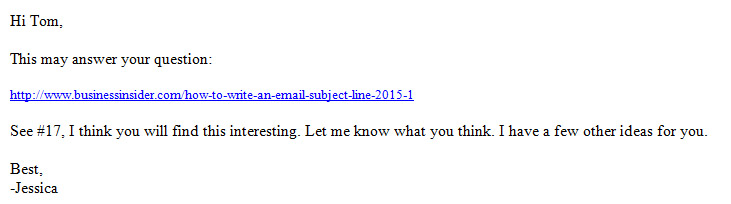 Not knowing if my thought on the subject line was correct, I decided to reply to her email.