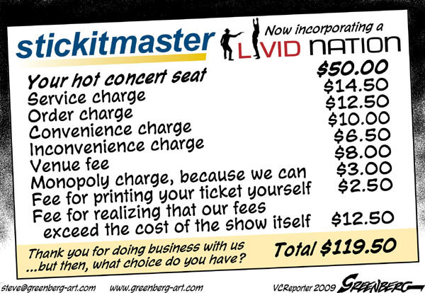 Ticket / Event Processing Fees – Where do these companies like Ticketmaster and Ticketfly get off charging insane amounts for processing fees? A computer is doing the processing and the cost is probably 2 cents. Where does this cost come from other than a way to bend over the customer. I recently bought 2 tickets to a Phillies BBQ this Saturday and they cost $50 each and the processing fees were 24% of the cost of the tickets?!?! Absurdity.